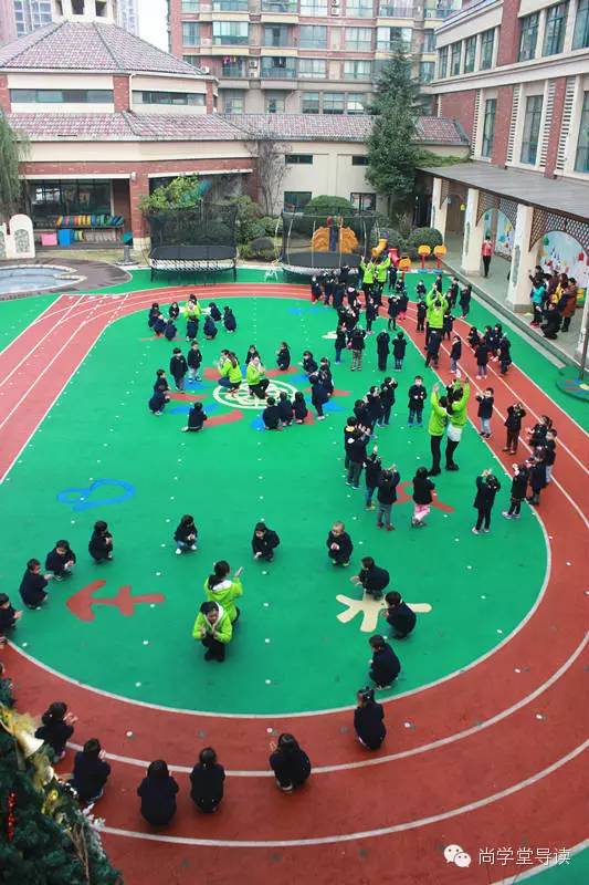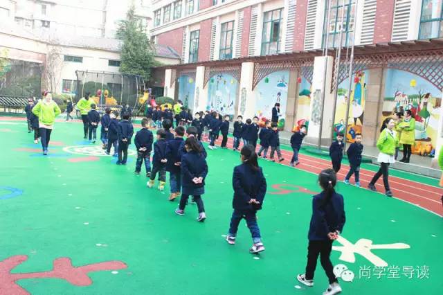 由专业舞蹈教师YOYO带领各年级老师共同编排,打破了传统的早操形式,在音乐节奏与队形变换上做了创新,时而纵队、时而围圈等。班级与班级间相互配合完成,年级组轮流进行,并且加入了教师的表演。整场课间操新颖、流畅、一气呵成。