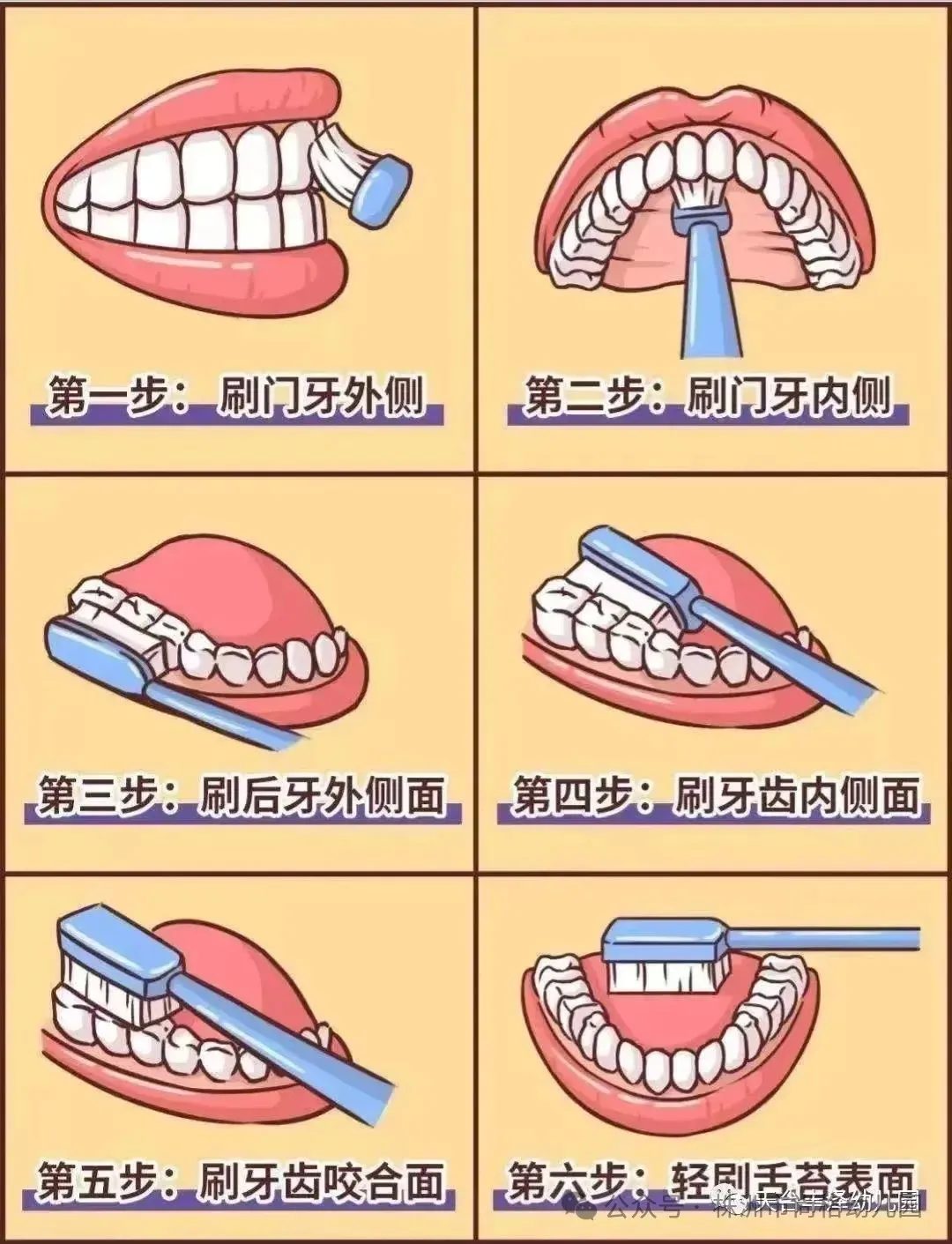小牙刷,手中拿,张开我的小嘴巴上面牙齿往下刷,下面牙齿往上刷左刷刷、右刷刷,里里外外都刷刷早晨晚上都要刷,刷出一口小白牙刷完牙齿笑哈哈,露出牙齿白花花