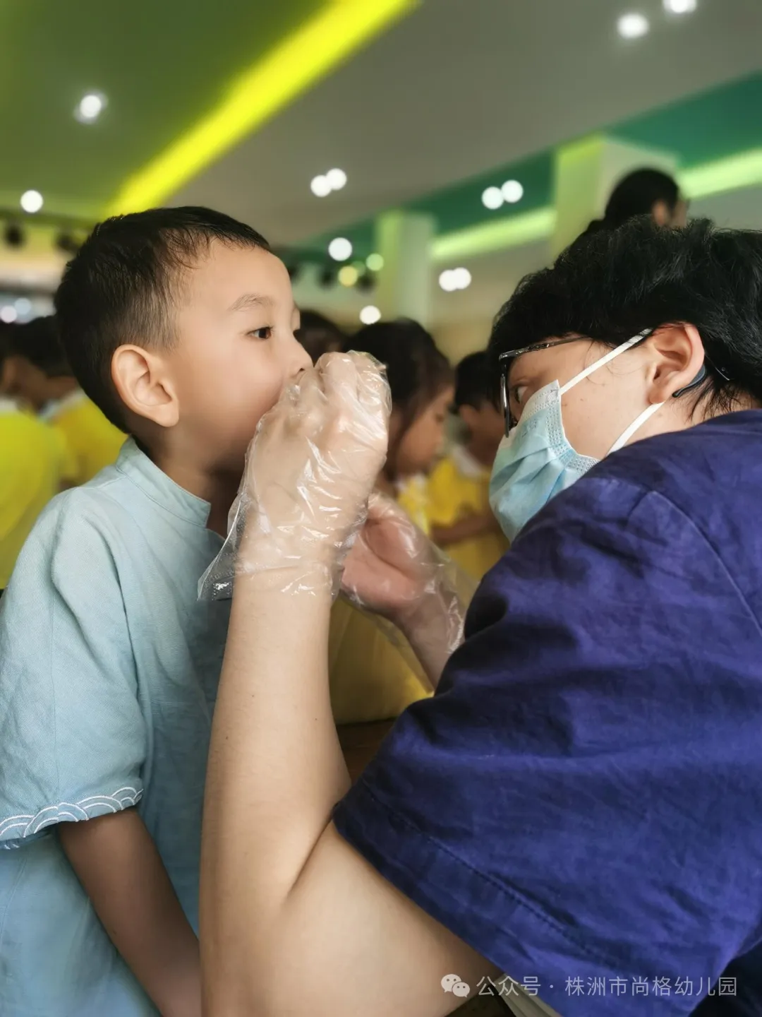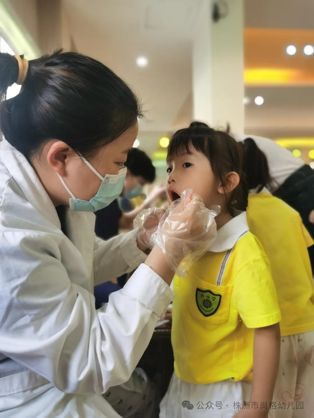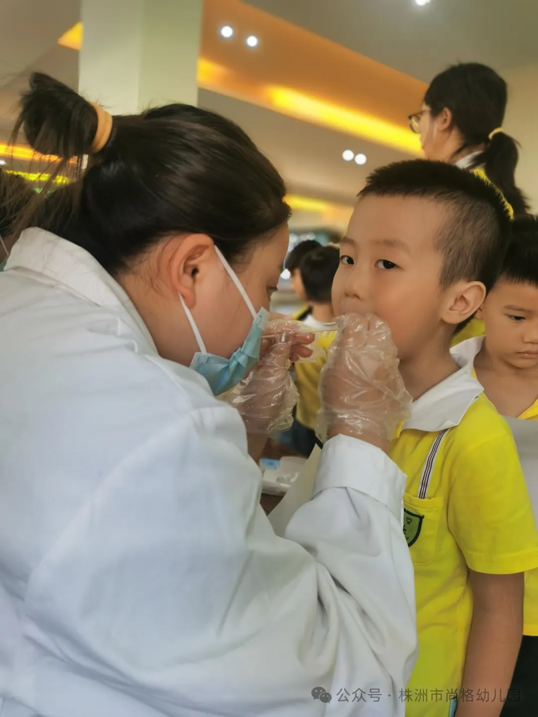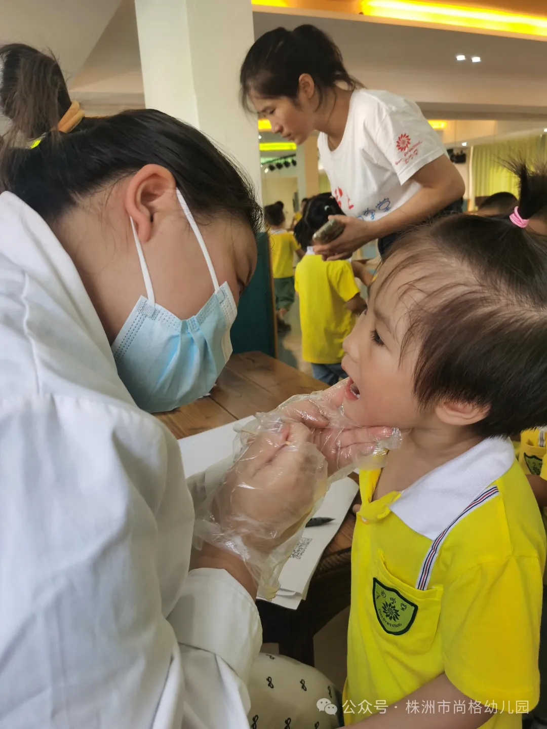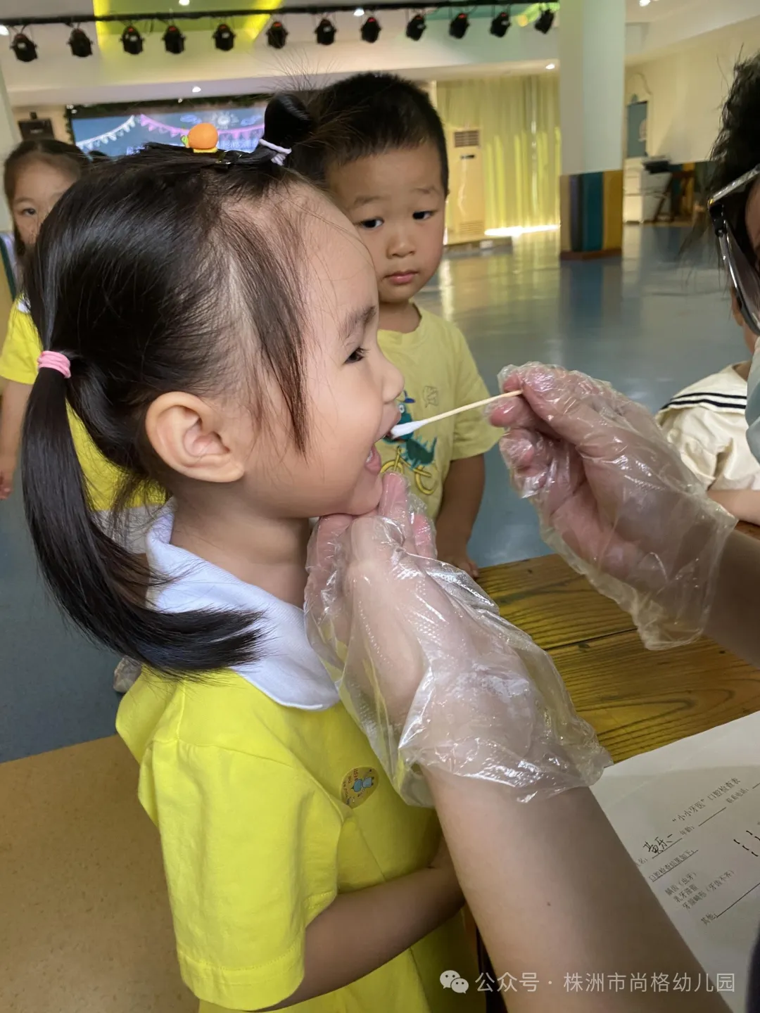 爱牙知识学习结束后,牙医给每位孩子进行了一次全面的牙齿健康检查,包括蛀牙、换牙情况等。