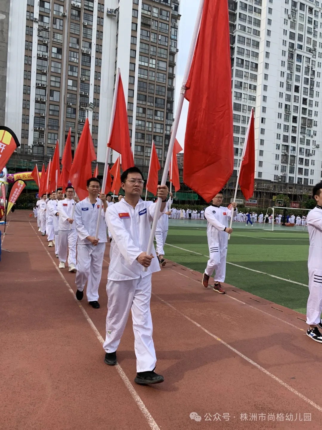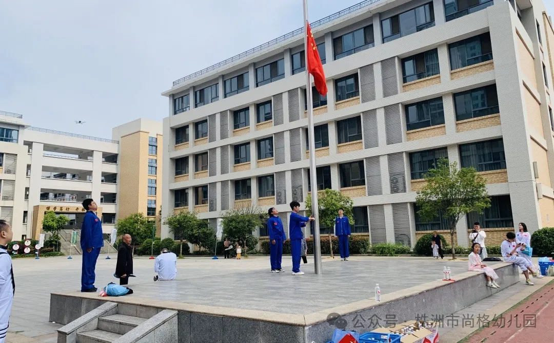 伴随着激昂欢快的进行曲,我们的国旗队手握国旗,迈着坚实有力的步伐,昂首阔步向我们走来。在国旗队的引领下,每个人坚定眼神,高唱国歌,行注目礼!