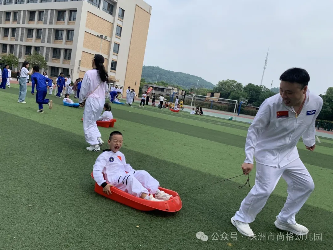 游戏过程中,“大宇航员”们步伐铿锵有力、精神饱满、神采奕奕。“小宇航员”们全身心地投入,在无限的宇宙中探索,深刻体验“航天航空”系列运动带来的无尽欢乐。