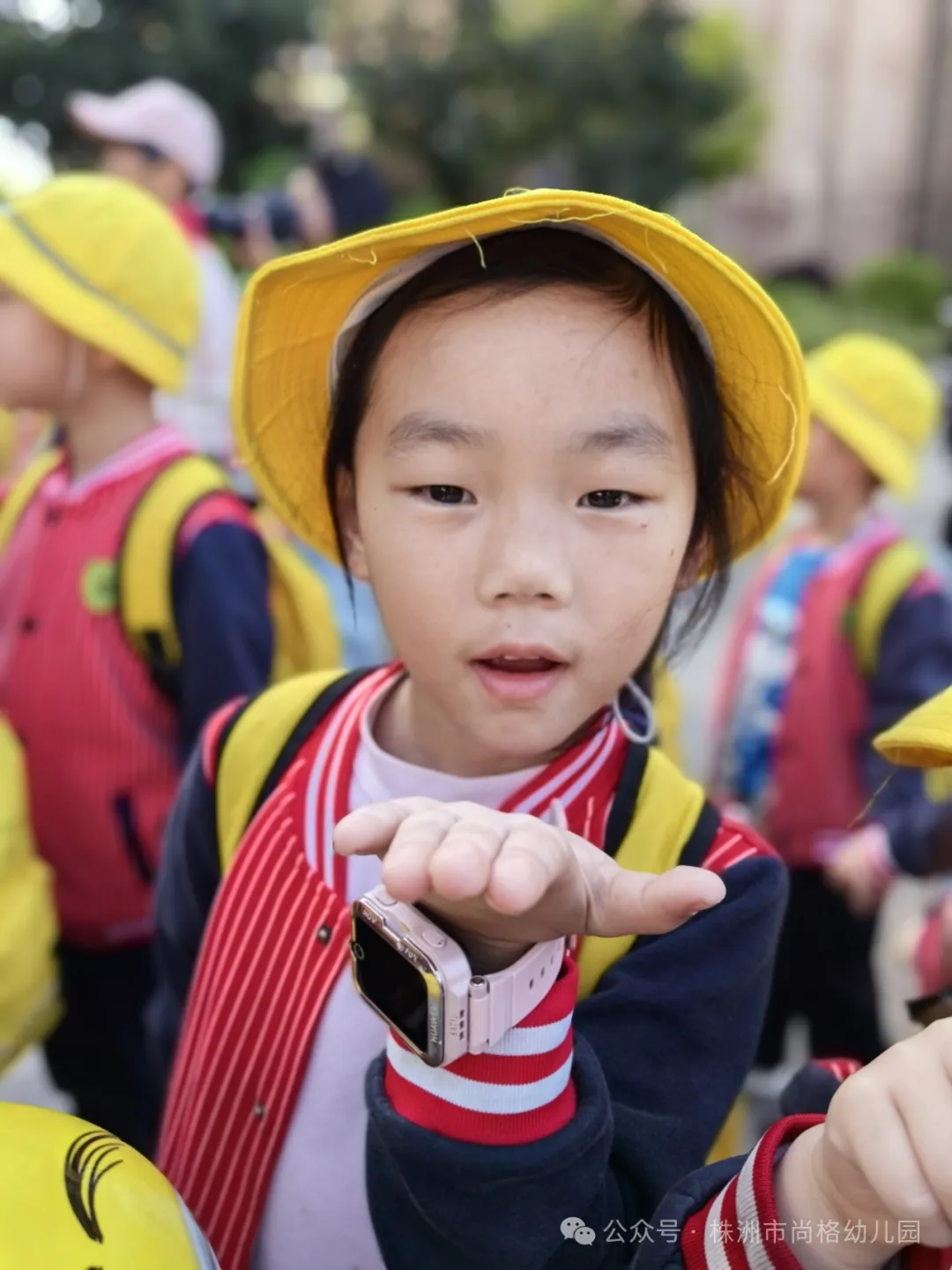 快看,孩子们穿着整齐的园服,怀着兴奋的心情,在老师的带领下排着队一同感受自然、寻觅春天,共赴一场春日之约。
