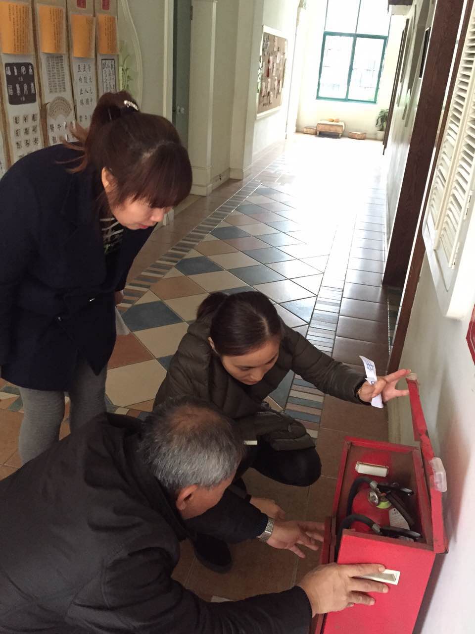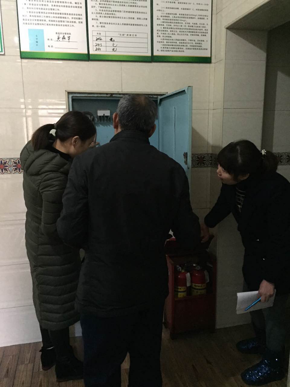 为进一步加强冬季幼儿园安全管理,切实保障师生的生命财产安全,12月14日上午,我园龙园长带队,组织学校主管安全工作的曹老师与保安对幼儿园进行地毯式排查,全面排查各类安全隐患排查。龙园长一行人对灭火器、消火栓、水带、水枪、报警器、应急灯、疏散标志、班级插座等进行了详细的排查,针对发现的细节问题、需要调整的地方责令后勤部门在两天之内整改到位。