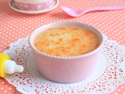 (3)胡萝卜去皮捣成泥,再加入山药、大米、小米同煮