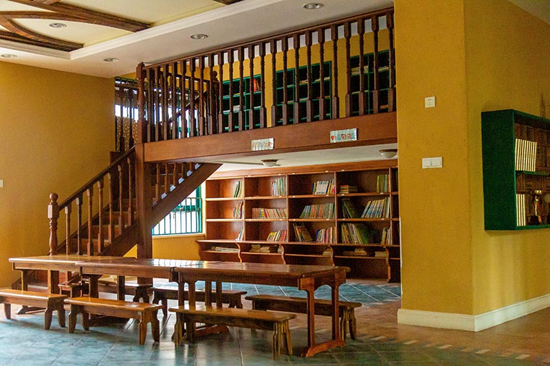 “孔夫子学堂”,这是我们专业教室里空间最大的一间,国学作为尚格幼儿园的一个主要办学特色,首先在硬件上要让孩子非常喜欢,我们的国学课程涉及琴、棋、书、画,老师和宝宝们平日里上课都是穿着汉服入室上课的,以纯正的环境氛围营造让宝宝体验的中国传统文化的魅力。